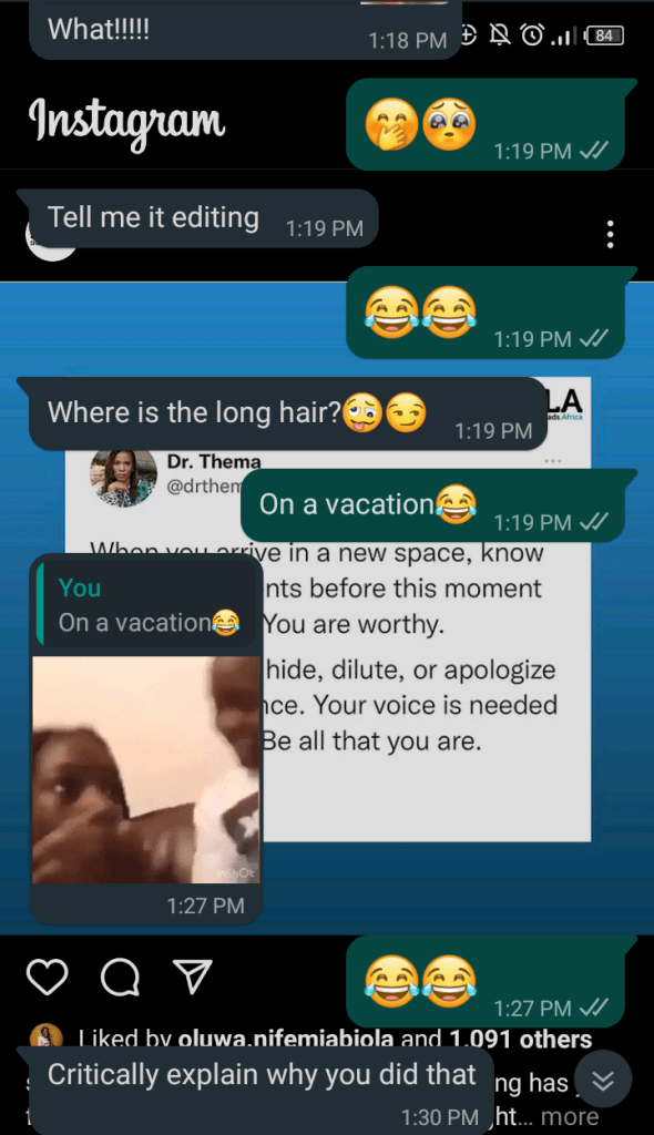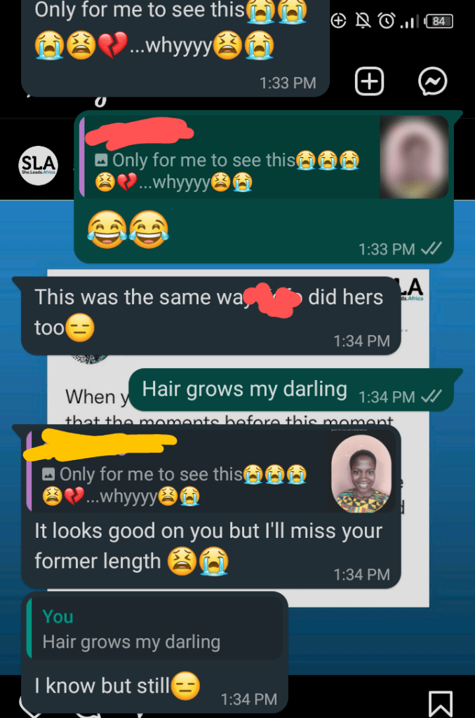 What was done was done, a young lady got an haircut and I can promise you that though my joint-hairs are still mad at me( cos who cuts long lovely hair?), they’re loving it too 😊.